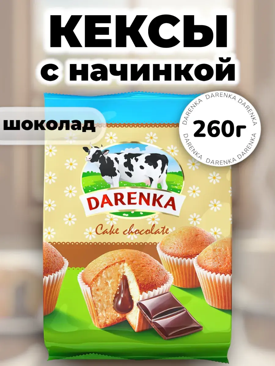 Кексы с шоколадом DARENKA — это воплощение домашнего уюта в современном формате. Мягкие, воздушные, с насыщенной шоколадной начинкой, они покоряют с первого укуса. Нежное тесто, пропитанное ароматом свежей выпечки, и густой крем из шоколада, который тает во рту. Каждый кекс — мини-десерт, созданный для удовольствия и быстрого перекуса без лишней суеты. Благодаря прочной флоупак-упаковке, кексы надолго сохраняют свежесть и аромат. Удобный формат позволяет брать их с собой — на работу, учебу, в дорогу или на пикник. Эти кексы созданы для тех, кто ценит уют и вкус без лишней суеты. Они идеальны для домашних посиделок, уютных завтраков, кофе-брейков в офисе и перекусов в дороге. Один укус — и будто снова дома, где пахнет выпечкой и тепло.