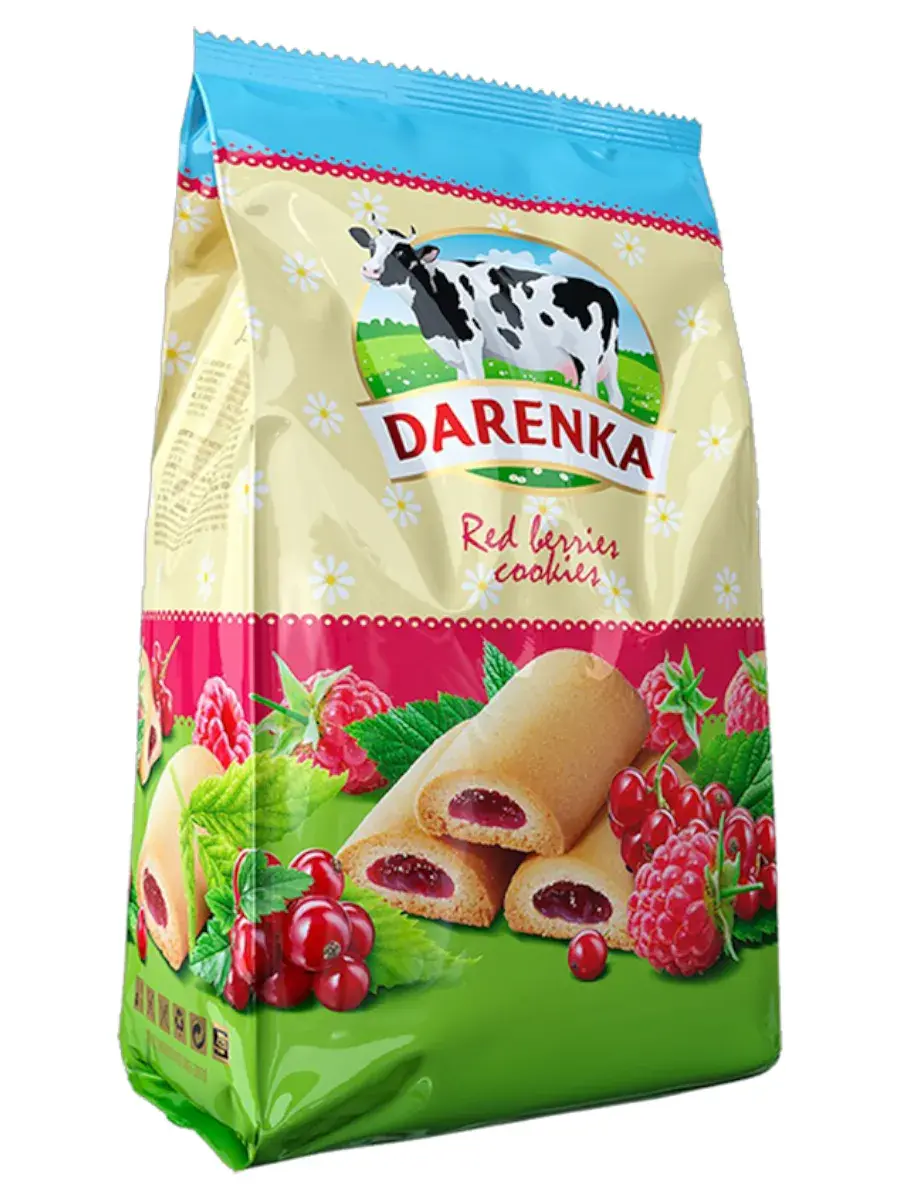 Печенье DARENKA — это воплощение домашнего уюта и настоящего вкуса, который возвращает в детство с первого кусочка. Мягкое, рассыпчатое тесто с ароматом сливочного масла сочетается с нежной фруктово-ягодной начинкой, наполненной вкусом лета. Каждое печенье — это маленький десерт, в котором встречаются спелые ягоды и солнечные фрукты: малина, клубника, абрикос, черника, смородина. Они дарят естественную сладость и лёгкую кислинку, делая вкус насыщенным, но не приторным. DARENKA создана для тех, кто ценит простые радости и натуральное удовольствие. Это идеальный перекус в любое время дня: к утреннему кофе, на работе, в дороге или дома с чашкой горячего чая. Плотная упаковка сохраняет свежесть и аромат, а продуманный формат позволяет наслаждаться любимым вкусом, где бы вы ни были. Это не просто сладость, а символ тепла, заботы и хорошего настроения. Печенье, которое вдохновляет на улыбку. В нём нет ничего лишнего — только мягкое тесто, сочная начинка и немного волшебства, которое делает обычный день вкуснее.