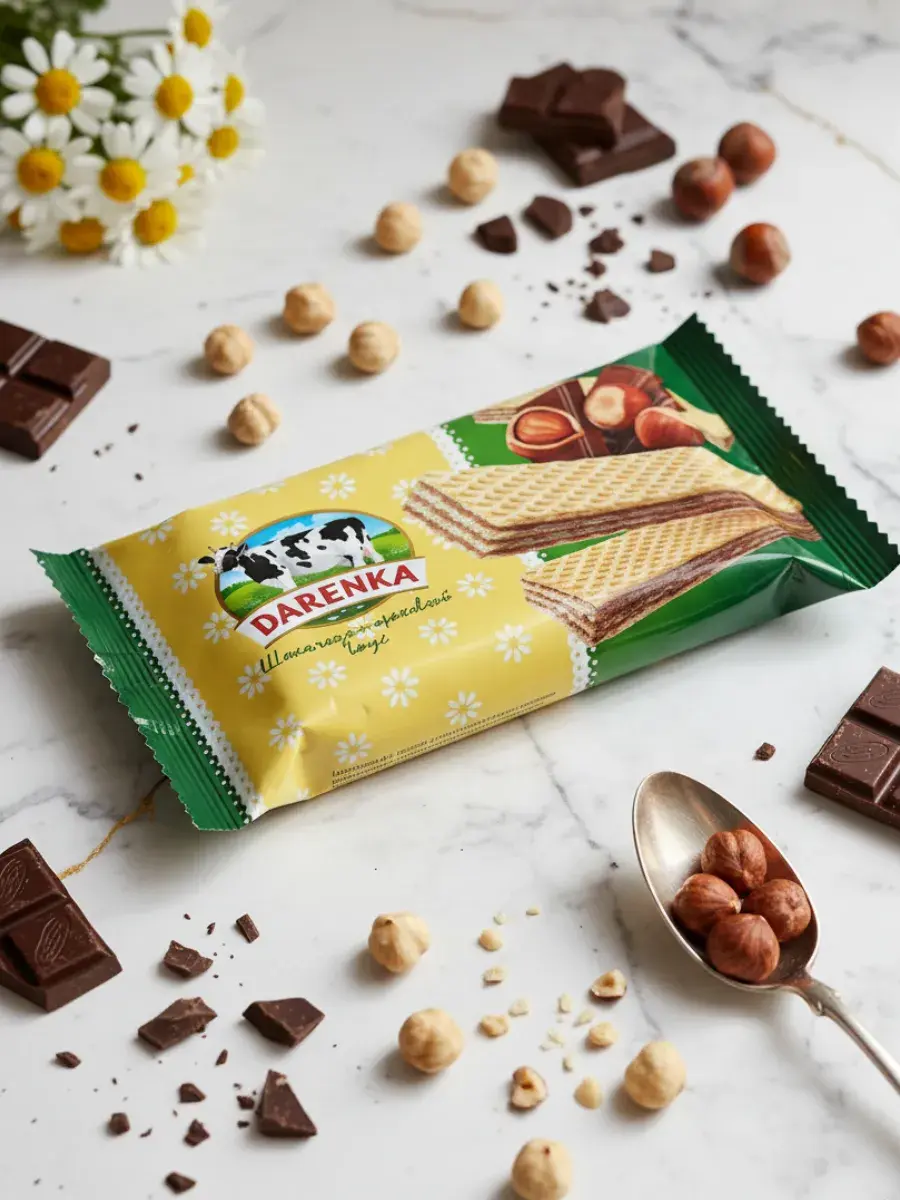 Вафли Darenka Шоколадно-Ореховый вкус — это момент чистого удовольствия, когда хочется чего-то вкусного и по-настоящему уютного. Хрустящие слои вафель нежно сочетаются с насыщенным шоколадно-ореховым кремом, создавая тот самый идеальный баланс сладости и аромата. Каждая вафля — как маленькое приключение для вкусовых рецепторов: немного хруста, немного нежности и море шоколадного кайфа. Эти вафли идеально подойдут к чашке кофе, для перекуса на работе или просто чтобы сделать день чуточку слаще. Darenka — это не просто вафли, а вкус, который возвращает настроение.